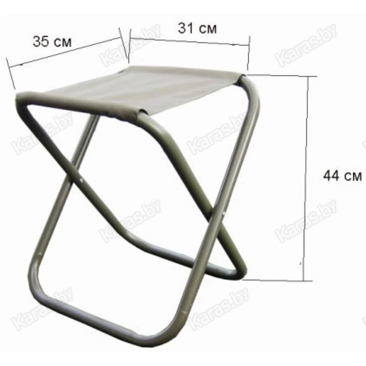 Стул складной изготовлен из стальной трубы 25 мм, покрыт порошковой краской. Ткань - плотностью 600 D, в два сложения. Нагрузка - до 200 кг. Вес - 1,8 кг.