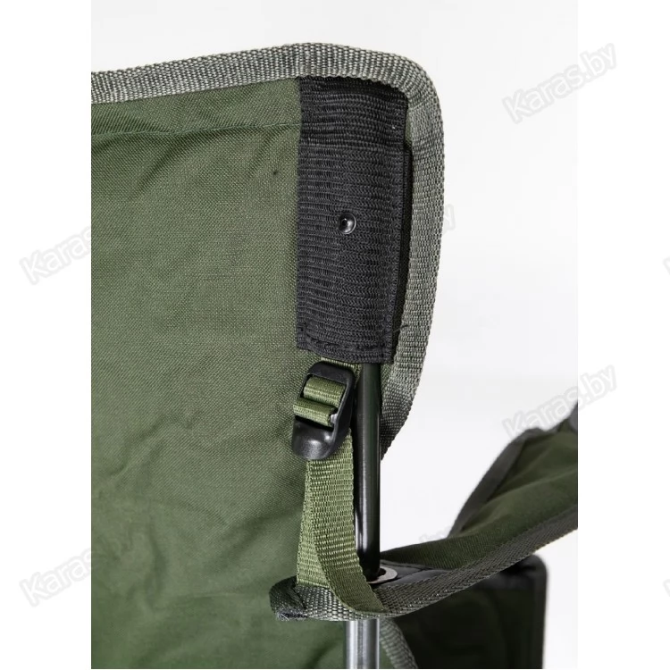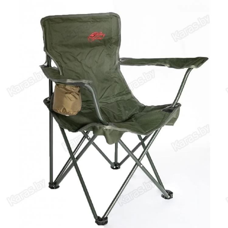 Удобное кресло c подлокотниками складывается по принципу зонта. Не занимает много места в багажнике. Каркас выполнен из стали и выдерживает нагрузку до 120 кг. Материал ткани полиэстер Oxford 600D.