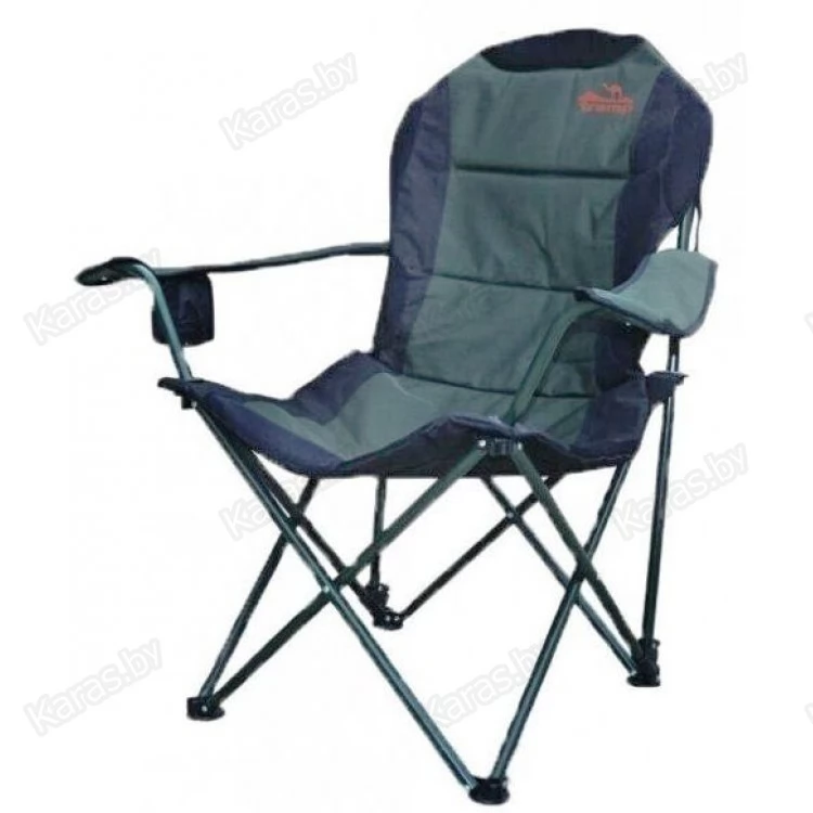 Удобное кресло c подлокотниками складывается по принципу зонта. Не занимает много места в багажнике. Каркас выполнен из стали и выдерживает нагрузку до 120 кг. Материал ткани полиэстер Oxford 600D.