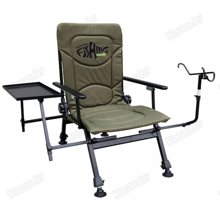 Кресло складное. Регулируемый наклон спинки, ножки с возможностью независимой регулировки высоты и широкими опорами. Кресло оборудовано небольшим столиком и держателем для удочек. Отличный выбор для рыбаков.
