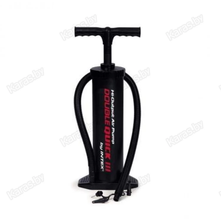 Ручной насос INTEX для накачивания надувных кроватей, матрасов, бассейнов, детских игрушек и мячей. Не зависит от электросети. Насос качает в 2 такта - как при поднятии рукояти вверх, так и при опускании ее вниз.  Даннная модель в 2,5 раза производительней, чем малый ручной насос. Комплектуется иглой для накачки мячей.