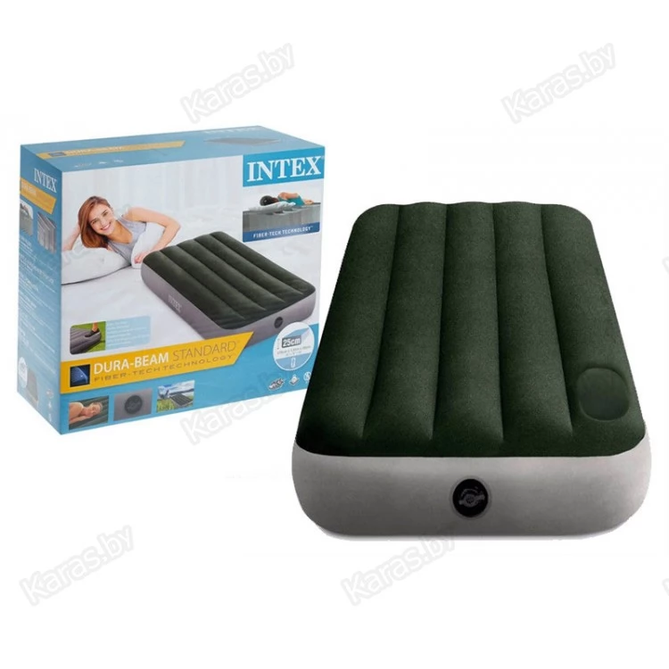 Односпальный надувной матрас со встроенным ножным насосом (лягушка) INTEX 64760 серии Downy Airbed. Надувной матрас серии Classic Downy Airbed Dura-Beam изготовлен по новейшей технологии Fiber-Tech. Благодаря своей технологии разрыв внутренних перегородок практически исключен. Бархатистая поверхность матраса не даёт соскальзывать белью, и в то же время легко чистится.
