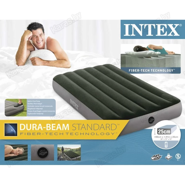 Односпальный надувной матрас со встроенным ножным насосом (лягушка) INTEX 64761 серии Downy Airbed имеет специальная конструкция Twin Downy, которая обеспечивает поддержку и мягкость.