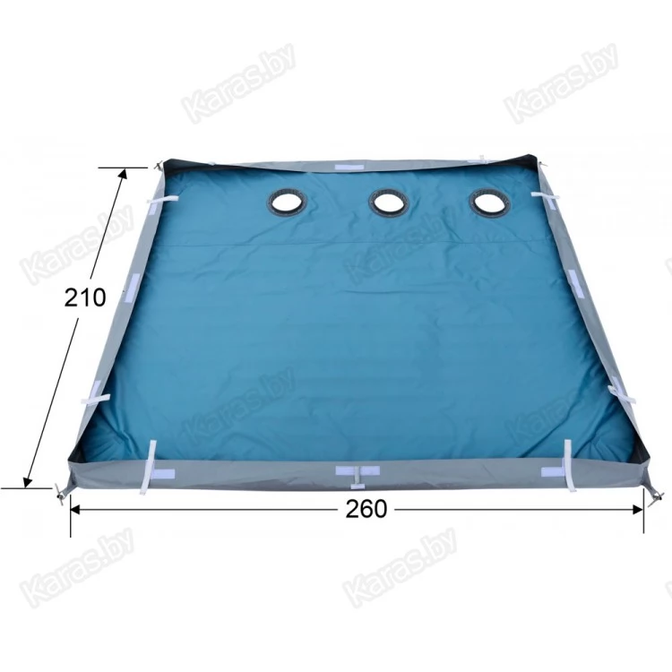 Дно гидро-термоизоляционное ЛОТОС Куб 4 (260х210) с отверстиями под лунки предназначено для надежной гидроизоляции, а также теплоизоляции пола и нижнего периметра стенок палаток серии «ЛОТОС Куб 4»