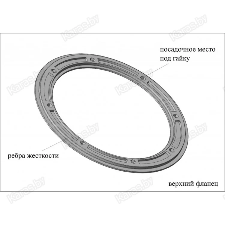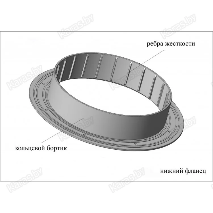Устройство образует отверстие под лунку круглой формы диаметром 200 мм и состоит из двух частей: верхнего и нижнего фланца.