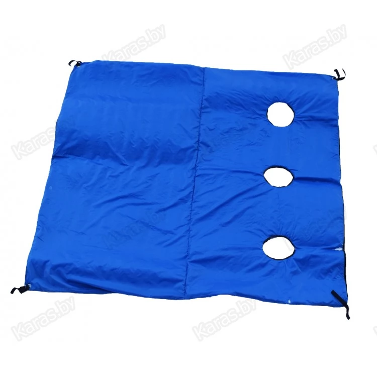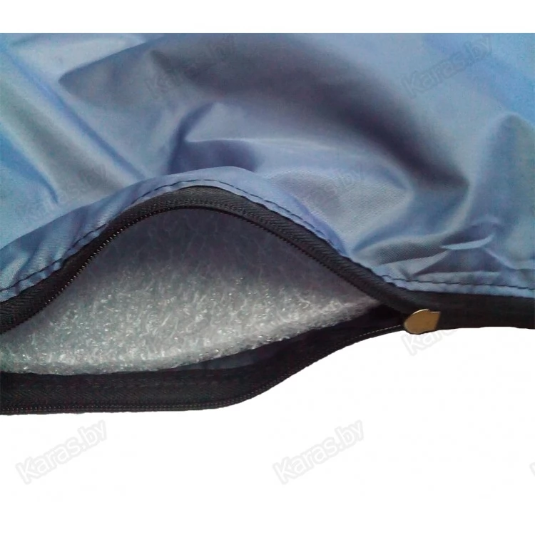 Дно изготовлено из двух слоев непромокаемой и износостойкой ткани полиэстер Oxford 300 и закрывает всю площадь пола. Внутрь вставлен утеплитель из пенополиэтелена толщиной 5 мм. При необходимости, утелитель можно вынуть, для этого предусмотрена молния сбоку. В каждом углу расположены эластичные завязки.
