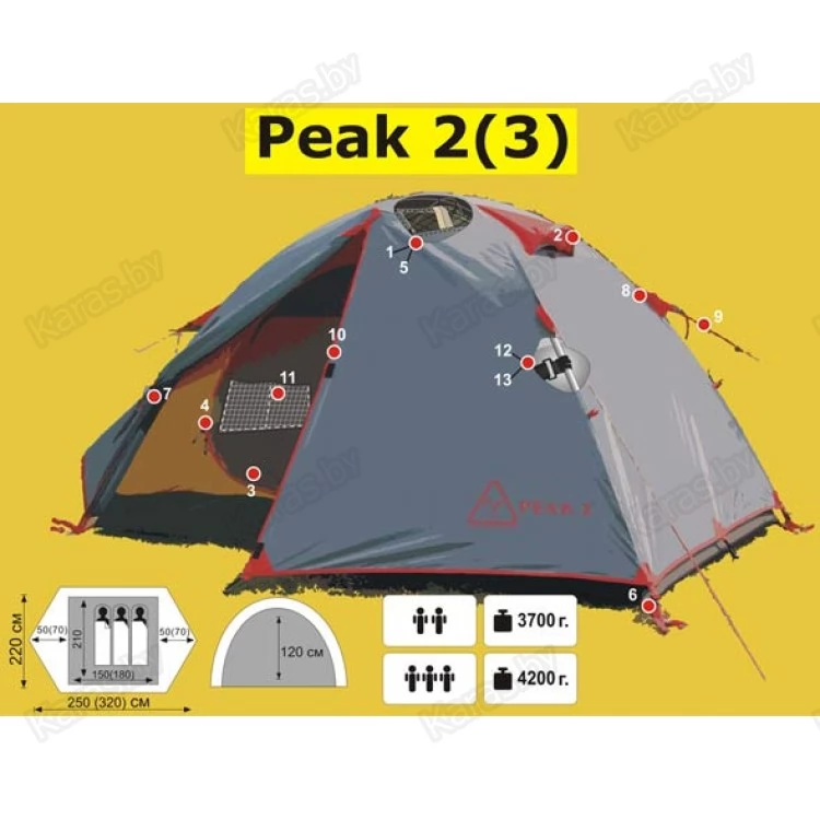 Профессиональная экспедиционная палатка с двумя тамбурами и двумя входами. Идеальна для туристических походов в любое время года и любых погодных условиях.