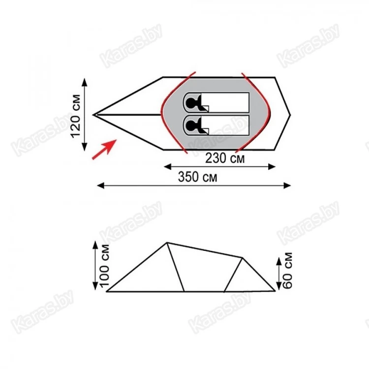 Тент: 100% Полиэстер Diamond RipStop 75D/190T PU 8000 мм в.ст.