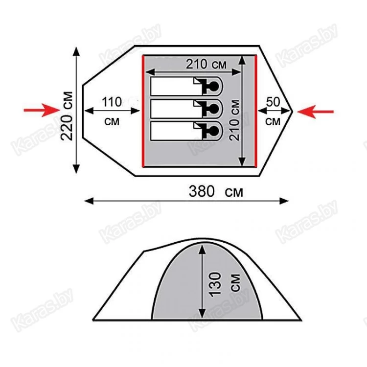 | Форма палатки | Полубочка |