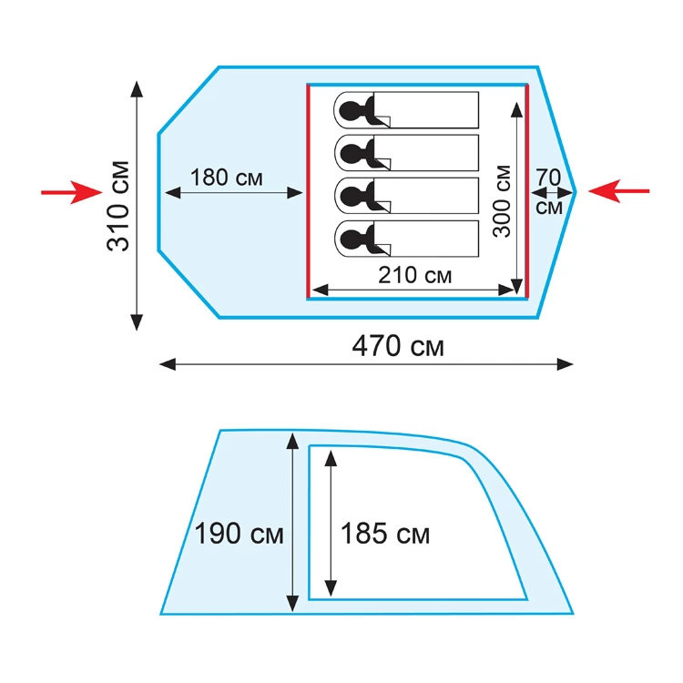 | Форма палатки | Полубочка |