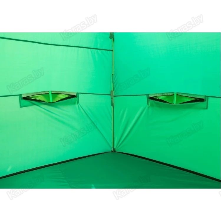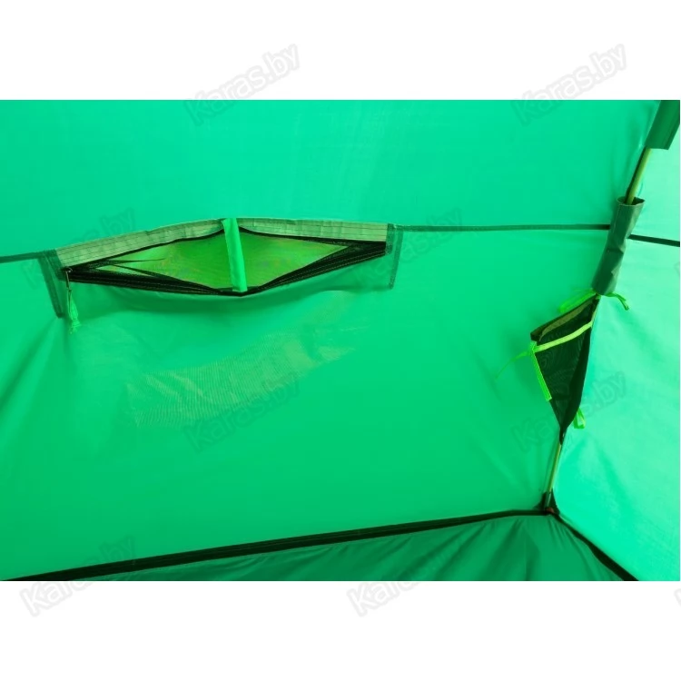 На стенках палатки расположены два окошка со встроенными противомоскитными сетками. Окошки оснащены опорными стойками, для их фиксации в открытом состоянии, и внешними планками, обеспечивающими им защиту от дождя.