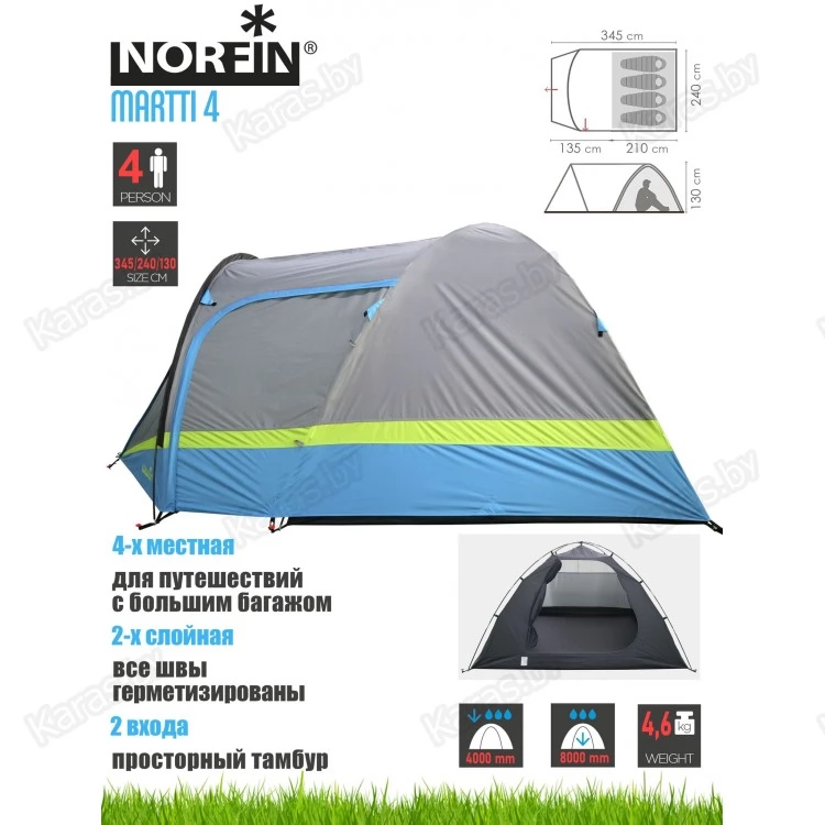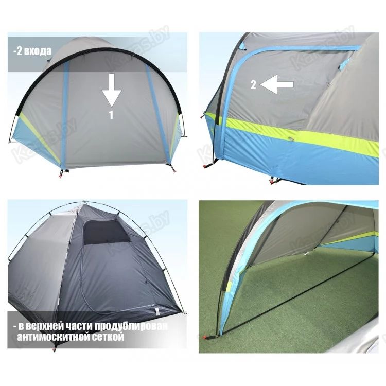 Палатка 4-х местная для путешествий с большим багажом. Одна из наиболее комфортных палаток в треккинговой группе. Два входа, просторный тамбур.
