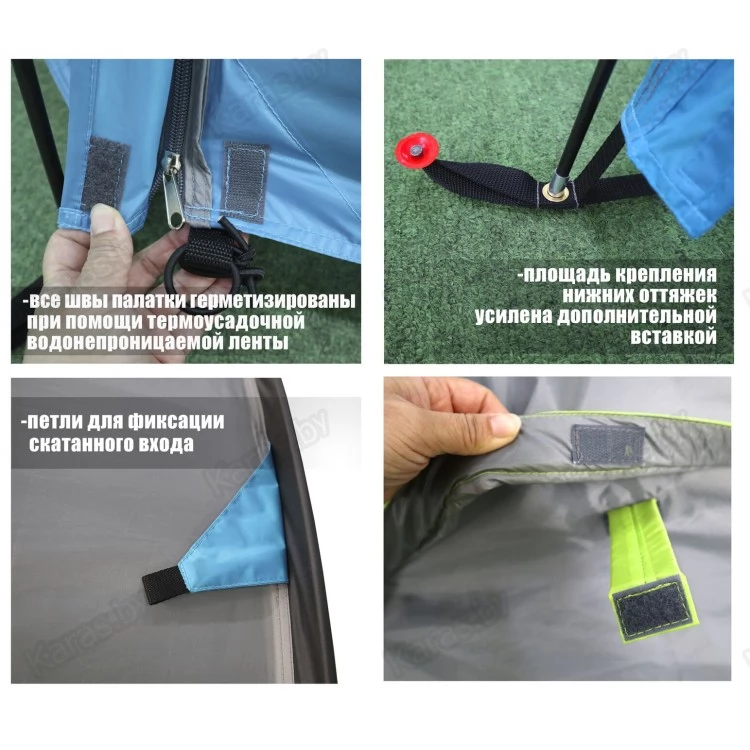 -все швы палатки герметизированы при помощи термоусадочной водонепроницаемой ленты