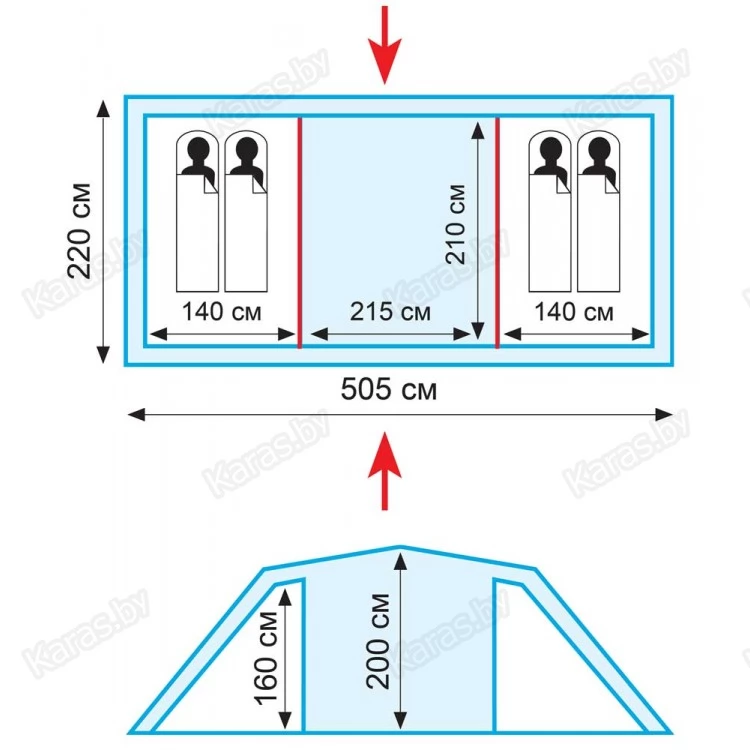 - Двухслойная кемпинговая палатка с двумя входами, большим тамбуром