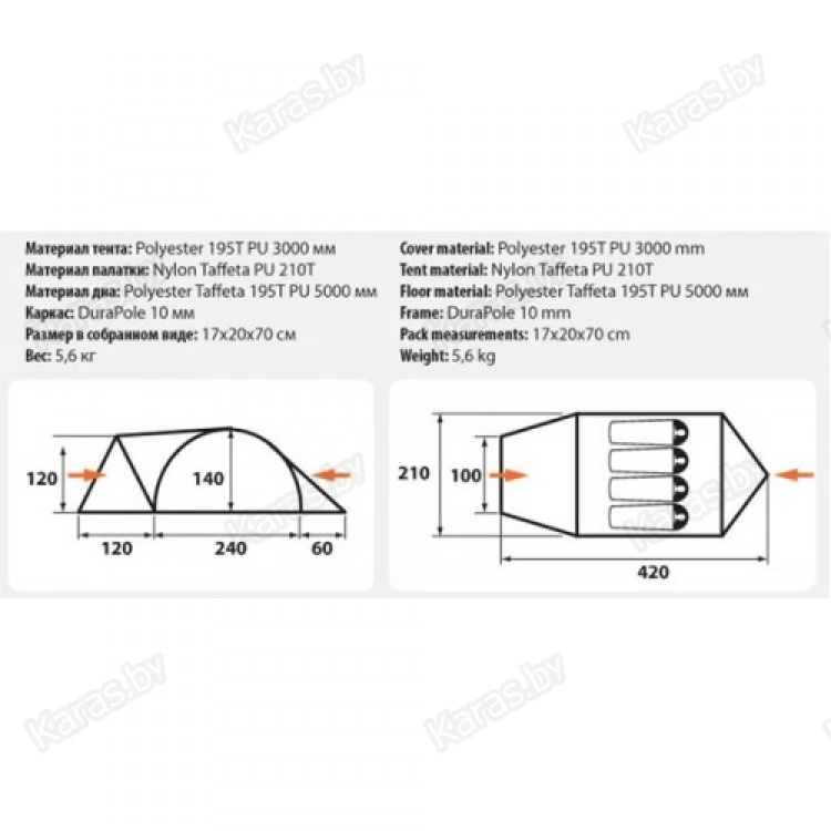 | Материал тента | Полиэстер 195T |