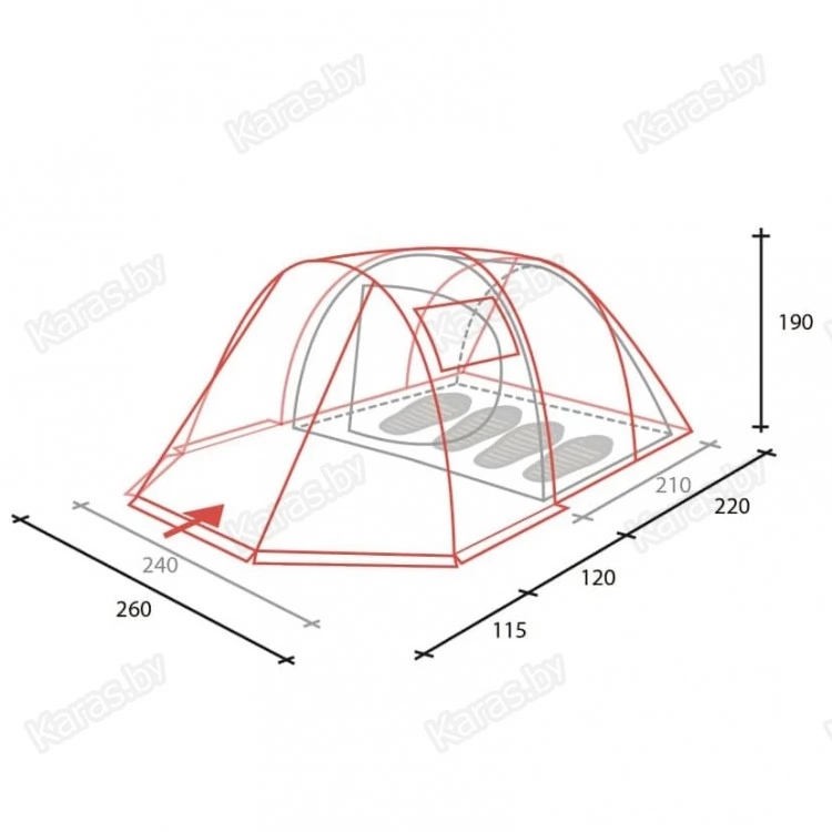 | Размер внутренней палатки, см | 210х240 |