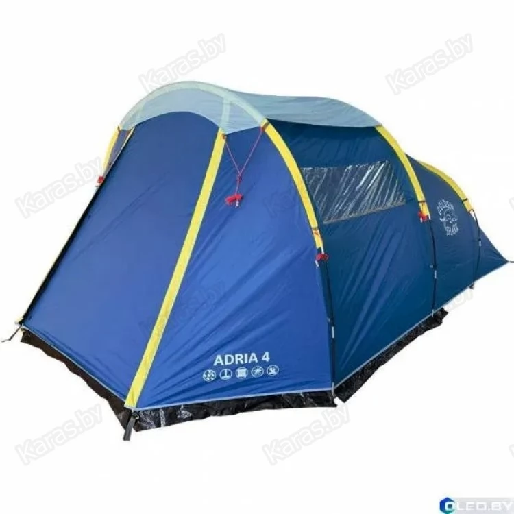 Просторная кемпинговая палатка Golden Shark Adria 4. Тент выполнен из ткани полиэстер 210Т RipStop влагостойкостью 6000 мм.в.ст., дно из терпаулинга влагостойкостью 11 мм.в.ст. Размер спального места 210х240 см, что позволит разместить в нем 4 человека. Высота палатки (190 см) позволяет встать в полный рост, что очень удобно.
