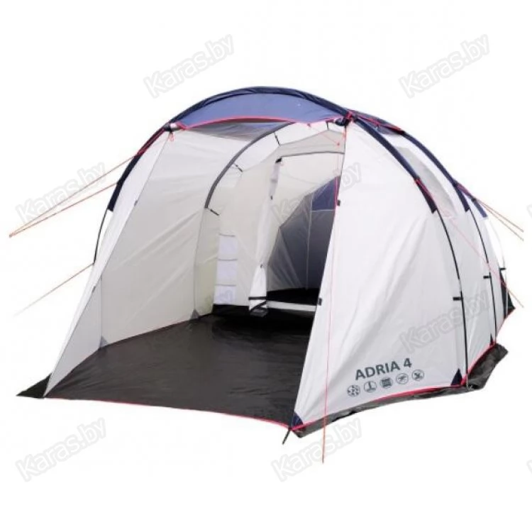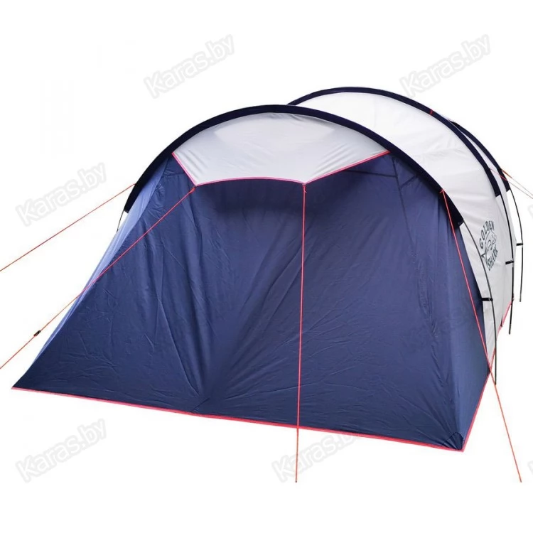 Просторная кемпинговая палатка Golden Shark Adria 4. Тент выполнен из ткани полиэстер 210Т RipStop влагостойкостью 6000 мм.в.ст., дно из терпаулинга влагостойкостью 11 мм.в.ст. Размер спального места 210х240 см, что позволит разместить в нем 4 человека. Высота палатки (190 см) позволяет встать в полный рост, что очень удобно.