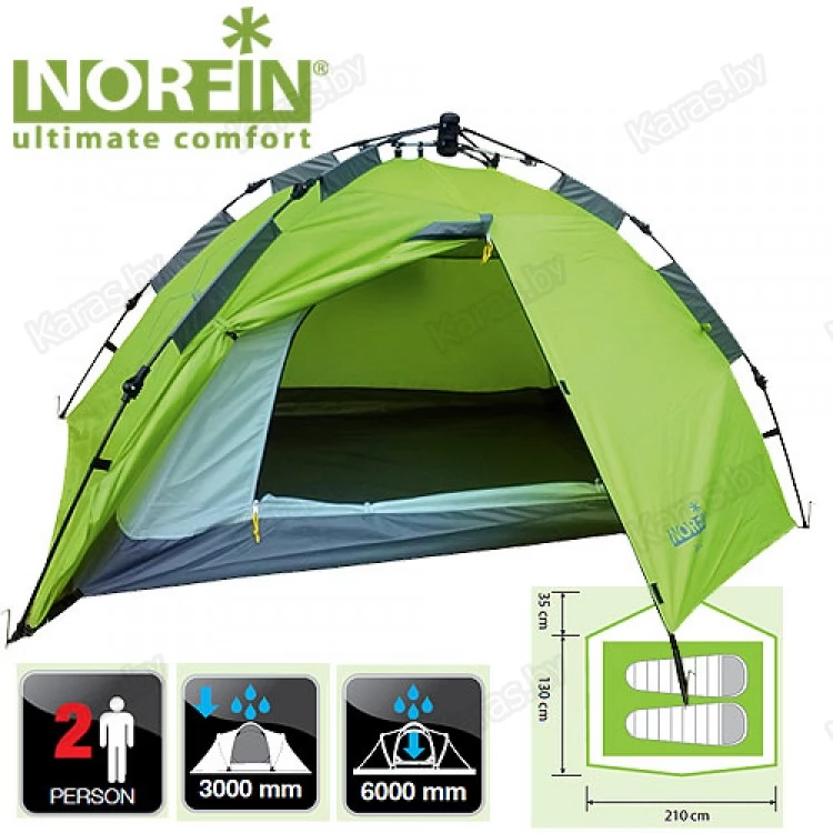Кемпинговые палатки для рыбалки и отдыха на природе не обязательно бывают многоместные. Палатка NORFIN Zope 2 отлично подойдет для того, чтобы туристы, один-два, а при желании – и три человека, - с комфортом провели ночь в лесу или на берегу озера. Идеально подходит для рыбаков, для пешего и велотуризма, поскольку очень компактна в собранном состоянии и весит 2.9 кг. Состоит из спальни и тамбура, где можно разместить рюкзаки, провизию и прочие вещи. Небольшие кармашки внутри палатки помогут грамотно разместить всякие мелочи. Палатка сделана из влагостойкого материала, двухслойная. Вход в палатку снабжен антимоскитной сеткой. Палатка NORFIN Zope 2 устанавливается одним человеком буквально за несколько секунд. Купить палатку NORFIN Zope 2 вам поможет магазин товаров для активного отдыха, расположенный по адресу karas.by.![]()