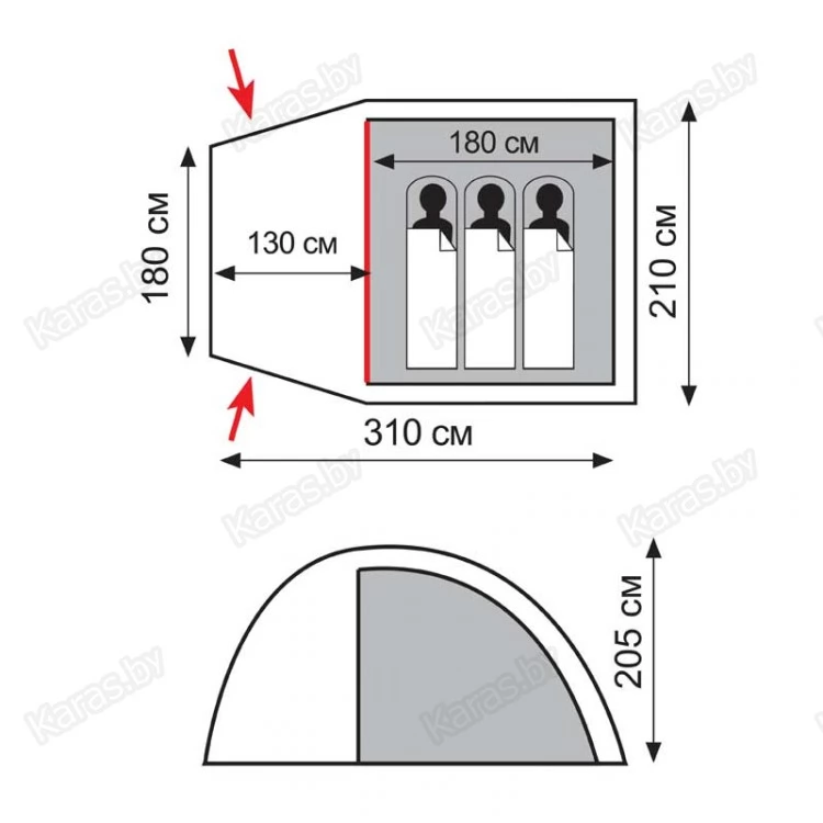 Тент: 100% Полиэстер Taffeta 75D/190T PU 2000 мм в.ст.