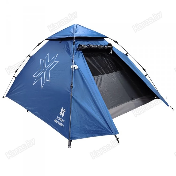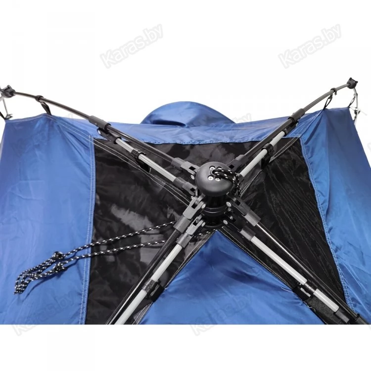 Двухслойная дуговая палатка с полуавтоматическим быстро сборным каркасом. Палатка изготовлена из материала Blackout с пропиткой черного цвета, не пропускающего солнечный свет. Внутренняя палатка также черного цвета. В палатке комфортно спать в любое время дня, а также в "белые ночи". Палатка имеет комфортное внутреннее пространство, один вход и небольшой тамбур. Внутренняя палатка и тент устанавливаются одновременно. Установка палатки может быть совершена одним человек за считанные минуты.