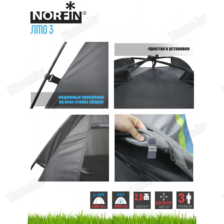 3-х местная двухслойная дуговая палатка. Очень проста в установке, даже на небольшой площадке. Сохраняет комфорт при минимальном весе.