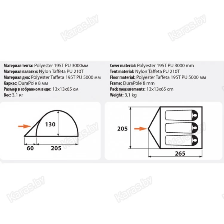 | Материал тента | Полиэстер 195T |