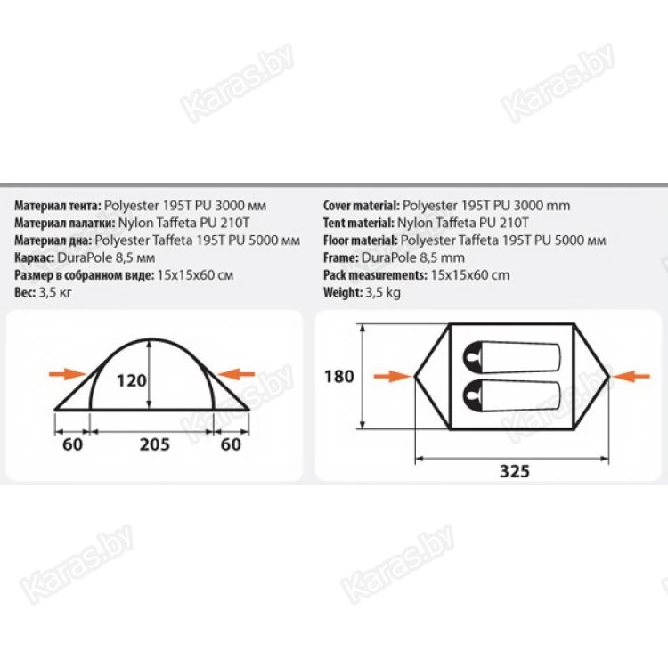 | Материал тента | Полиэстер 195T |
