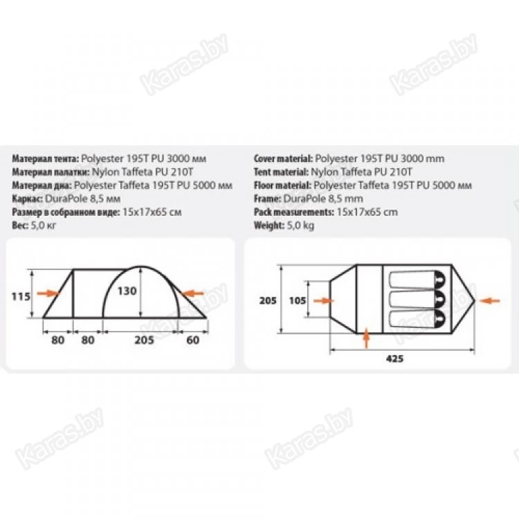 | Материал тента | Полиэстер 195T |