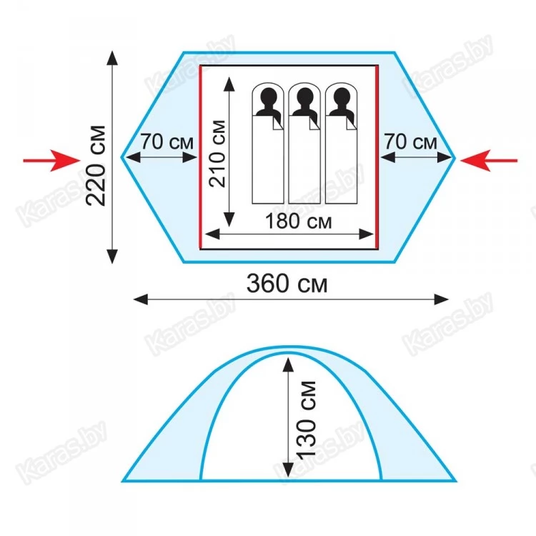 - Внешний тент имеет пропитку, задерживающую распространение огня