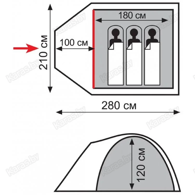 - двухслойный тент палатки; вход спального отделения продублирован москитной сеткой;
