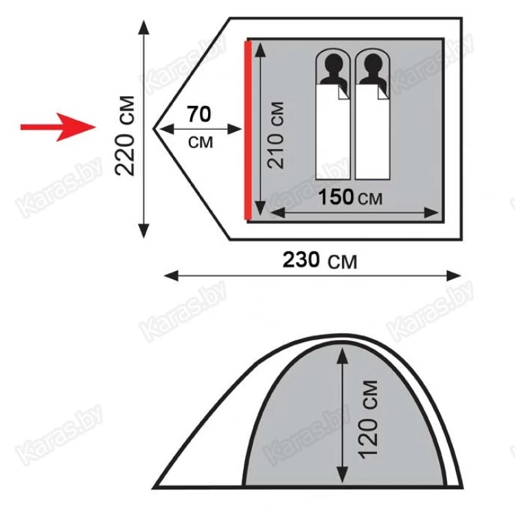 Тент: 100% Полиэстер Taffeta 75D/190T PU 2000 мм в.ст.