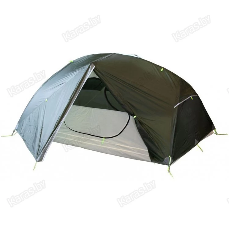 Полностью дышащий материал. Входы D-образные, на двухзамковых молниях, их можно открывать и закрывать с занятыми руками. Оба входа продублированы москитной сеткой.