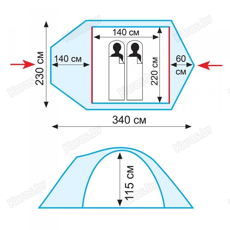 - Внешний тент имеет пропитку, задерживающую распространение огня