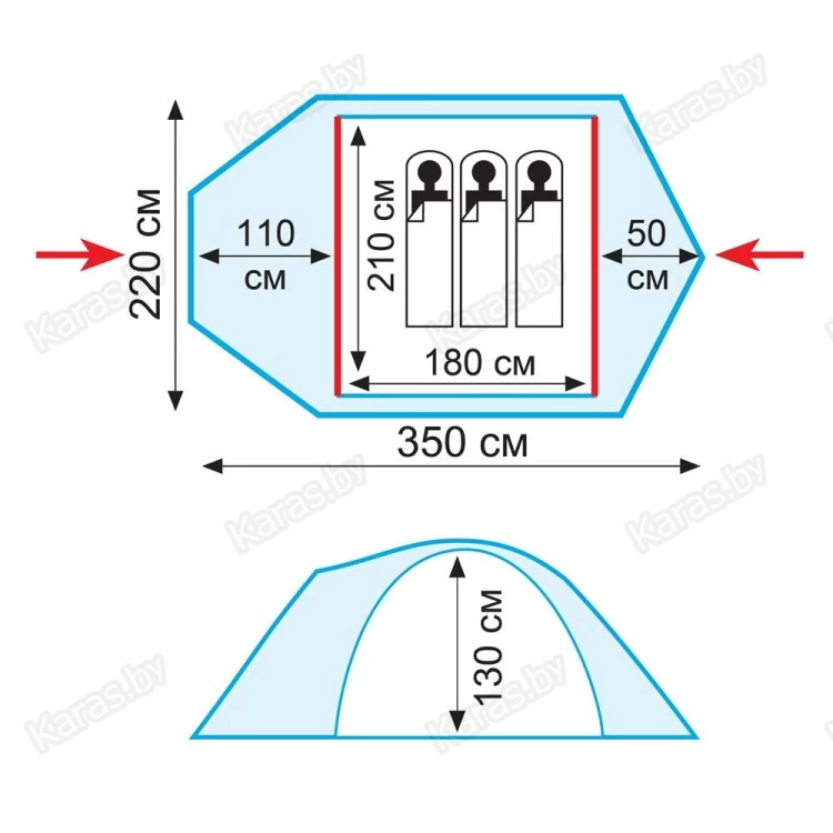 - Внешний тент имеет пропитку, задерживающую распространение огня