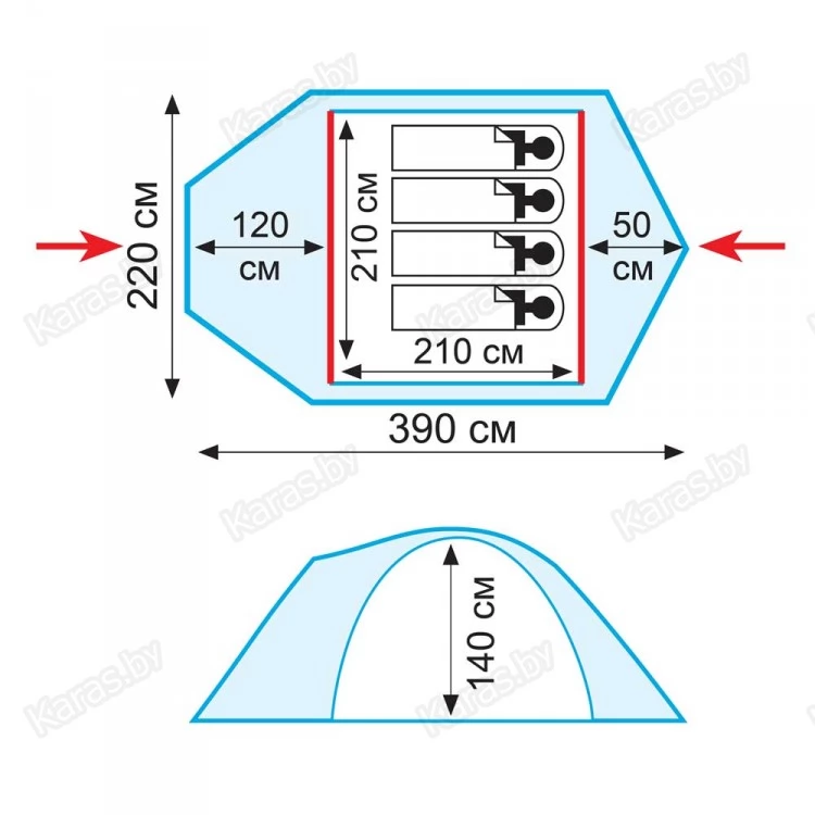 | Форма палатки | Полубочка |