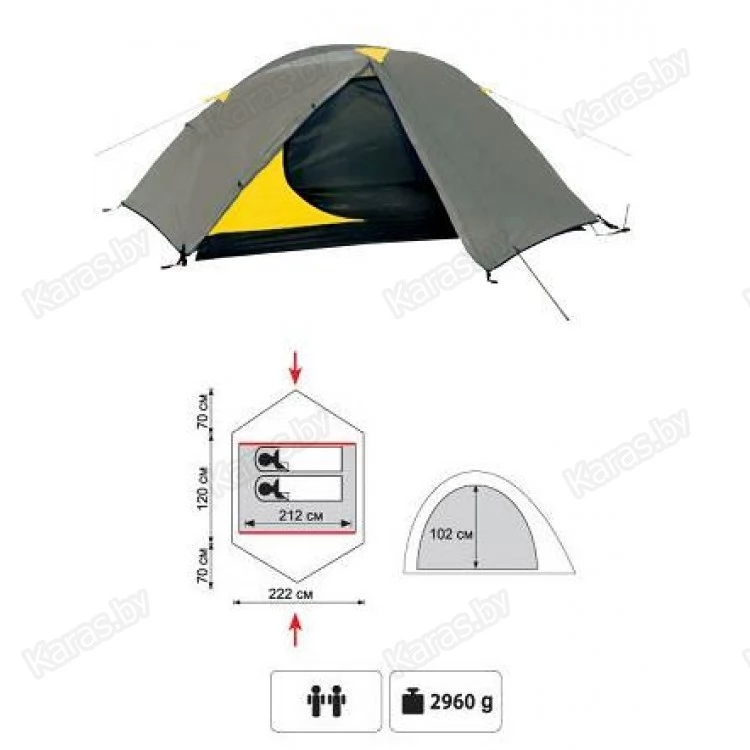 - Легкая двухслойная палатка с двумя входами