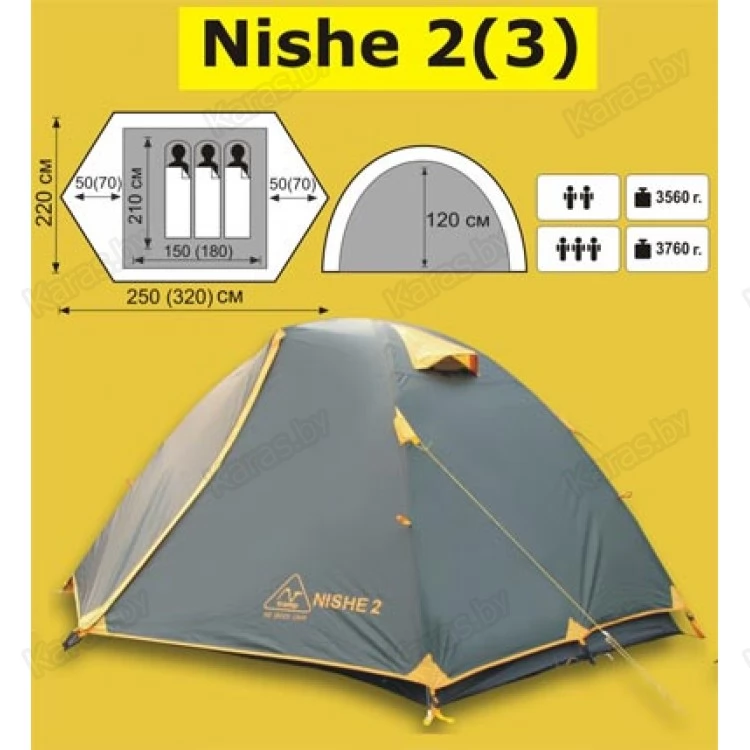 Универсальная двухслойная туристическая палатка-полусфера с двумя входами и двумя тамбурами с дополнительной усиливающей дугой над входом. 2 вентиляционных клапана. Все швы проклеены. Палатка идеальна для туристических походов в весеннее, летнее и осеннее время.