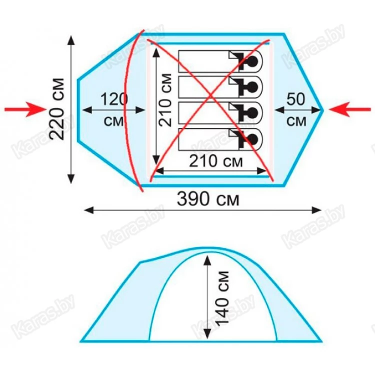 - Внешний тент имеет пропитку, задерживающую распространение огня