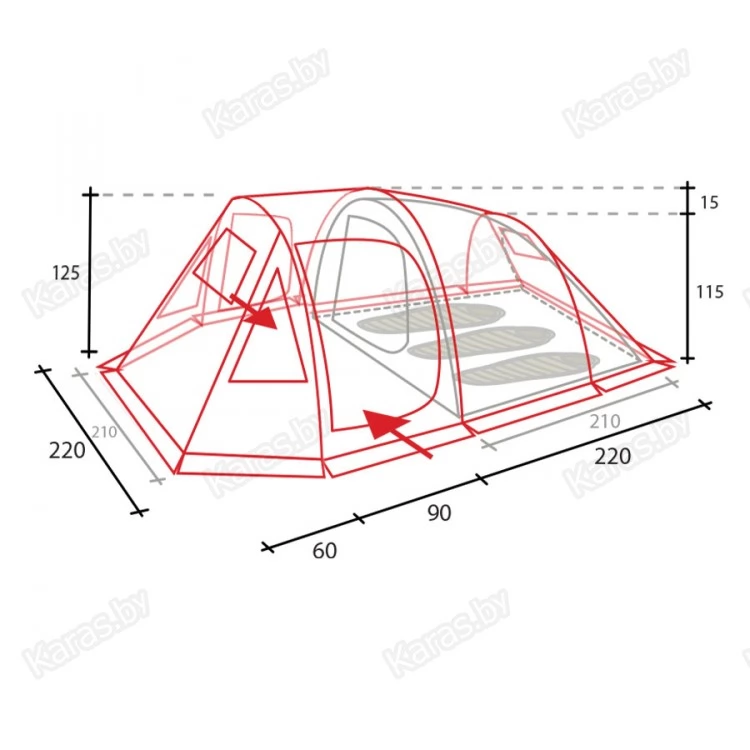 Улучшенная конструкция каркаса обеспечивает быстроту сборки палатки. Внутренняя палатка оснащена карманами для аксессуаров и вещей.