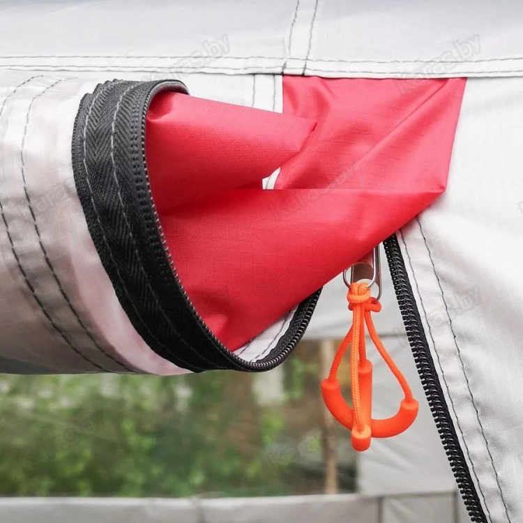 Современная конструкция позволяет в первую очередь установить верхний тент, что сохраняет спальные места сухими даже при сборке в сильный дождь. В данной модели можно убрать спальные места и превратить палатку в шатер или кухню.
