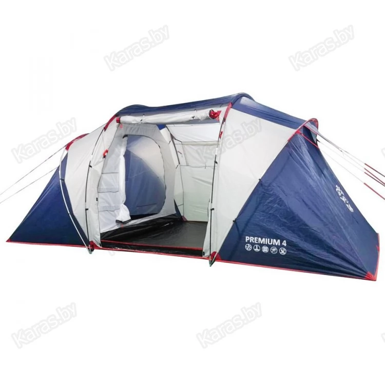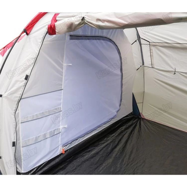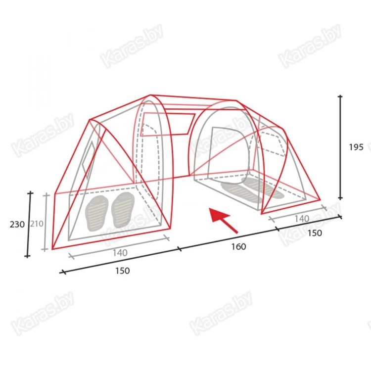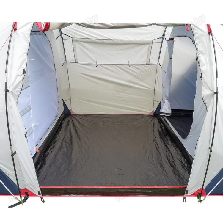 Высокая и просторная палатка с возможностью установки навеса. Две отдельные спальные комнаты отлично подойдут для большой компании или семейного отдыха. Большой тамбур позволит комфортно разместить Ваши вещи, стол и стулья.