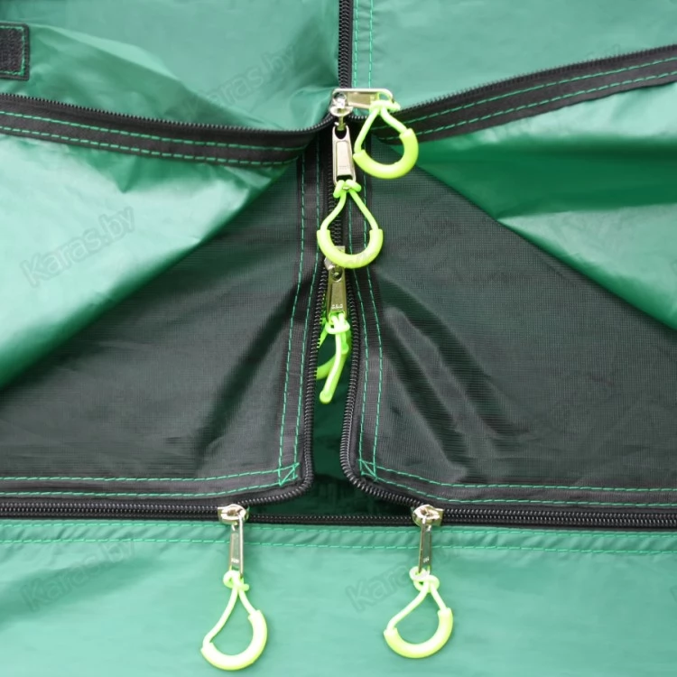 Высокий показатель водостойкости: 4000 мм. тент, 11000 мм. дно. Швы надёжно герметизированы термоусадочной лентой. Пропитка, задерживающая распространение огня.