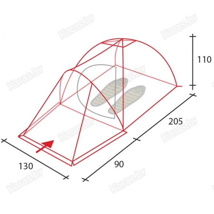 Легкая и компактная палатка, предназначенная для непродолжительного отдыха на природе. Палатка с тамбуром, где можно положить вещи. Изготавливается из прочной на разрыв, усиленной ткани 210T с защитой от УФ-излучения.