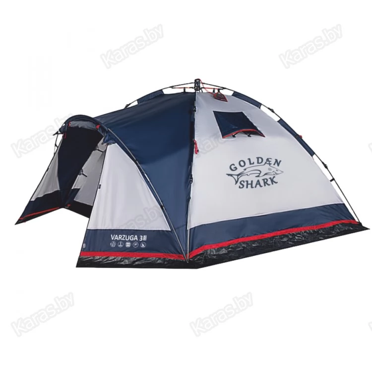 Полуавтоматическая палатка Varzuga 3 plus - новинка 2021 года в модельном ряду GOLDEN SHARK. Инновационная система FASTBERG в конструкции каркаса обеспечивает мгновенную сборку палатки.