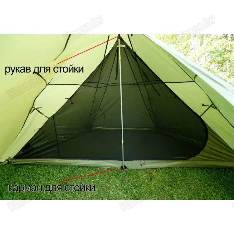 Внутренняя палатка выполняет функцию герметичной спальной капсулы, надежно защищенной от насекомых и от влажной почвы. Дно капсулы выполнено в виде влагостойкого корыта, изготовленного из прочной ткани полиэстер Оксфорд 210Д (плотность 100 г/м2) водостойкостью не менее 4 000 мм вод. столба. Дно герметично вшито к стенкам капсулы, изготовленным из прочной противомоскитной сетки плотностью 60 г/м2 и размером ячейки 0,5 мм, обеспечивающей защиту от мелкой мошки.