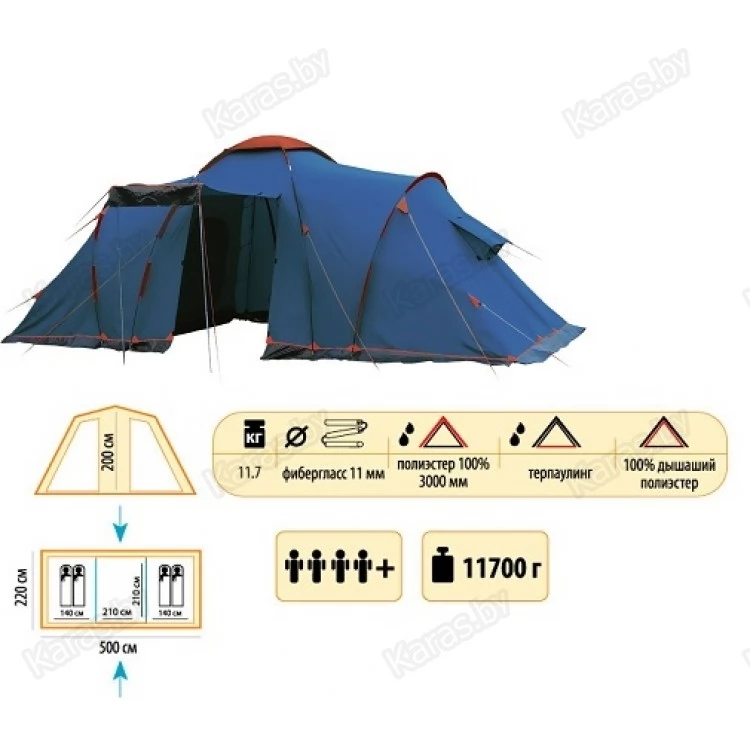 - Двухслойная кемпинговая палатка с двумя входами, большим тамбуром;