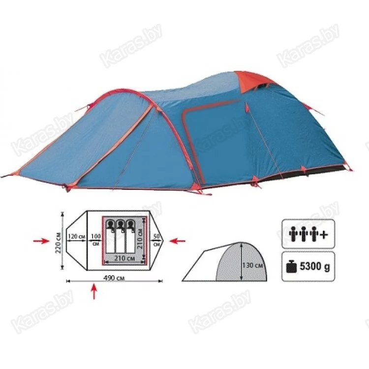 Внешний тент палатки устойчив к ультрофиолетовому излучению и имеет пропитку, задерживающую распространение огня.