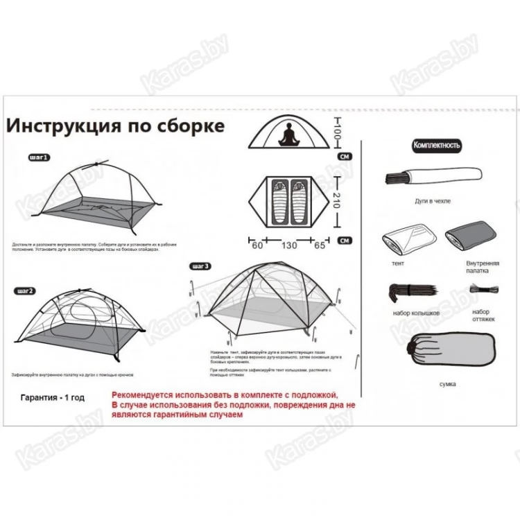 - при необходтимости к палатке можно докупить дополнительный пол (Footprint) для большей защиты дна палатки