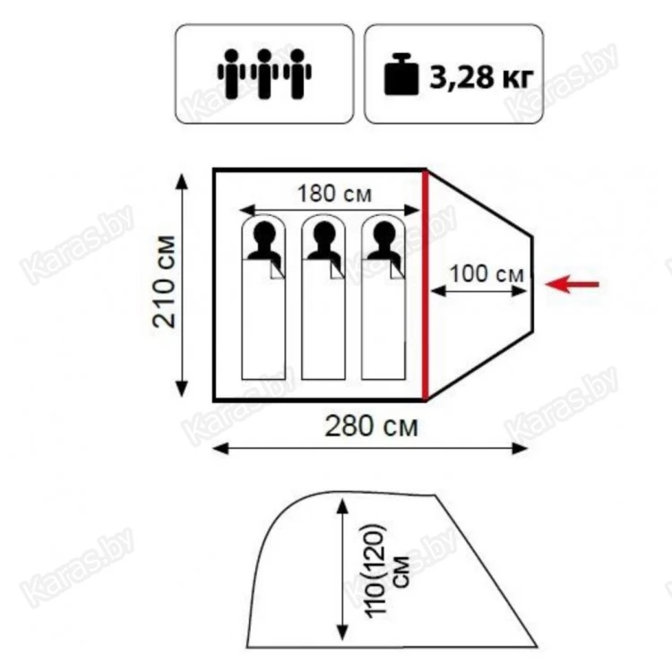 - Однослойная палатка с вместительным тамбуром